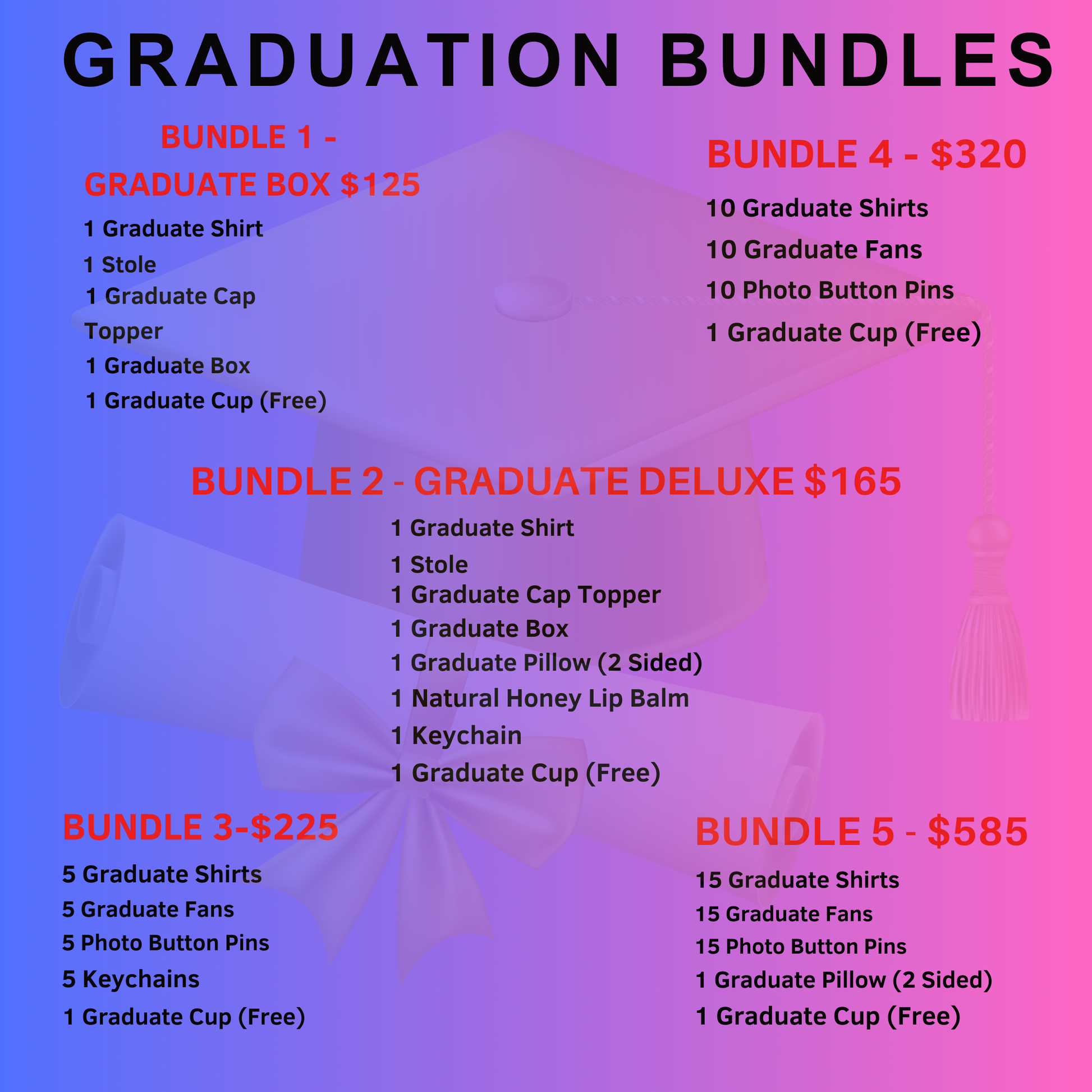 Celebrate your special someone's achievement and stand out with unique Graduation items! Whether you're a graduate or simply attending a graduation, these unique items will be stylish and set them apart from the rest. Graduating has never been more fun!" You can upload up to 3 pictures that must be clear and high resolution.